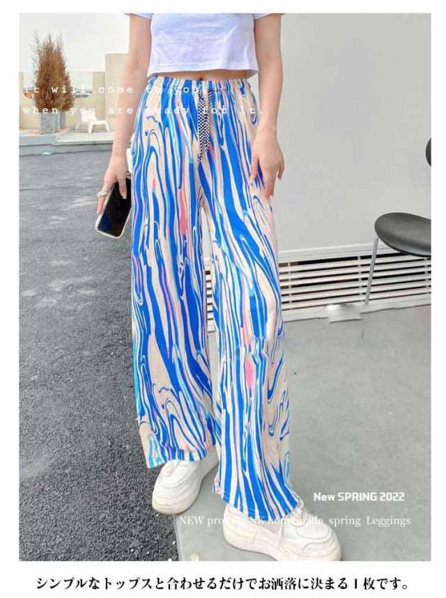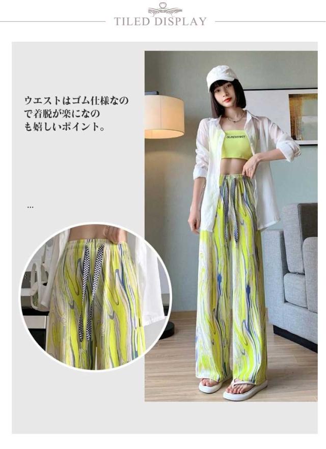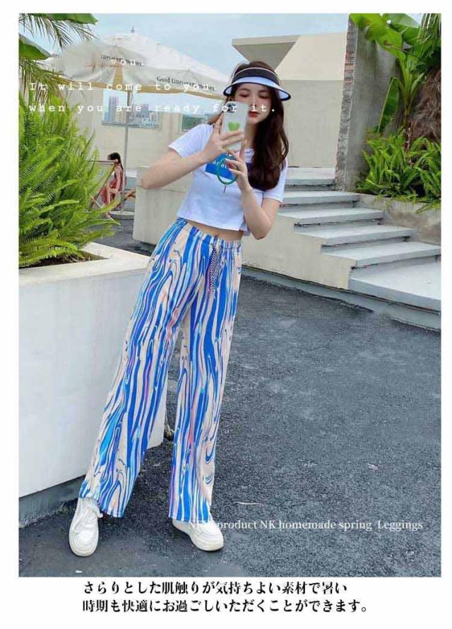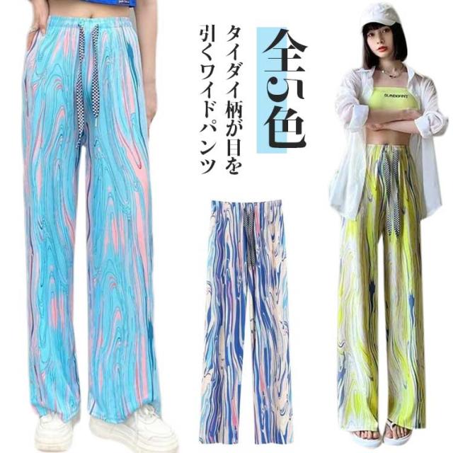 接触冷感 ワイドパンツ レディース イージーパンツ リラックス 柄パンツ 総柄 パンツ ストレートパンツ カジュアル タイダイ柄 ボトム ウエストゴム ゆったり 大きいサイズ ストレッチ ワイドパンツ サラサラ とろみ カジュアル キレイめ 春 夏 秋 可愛い 送料無料