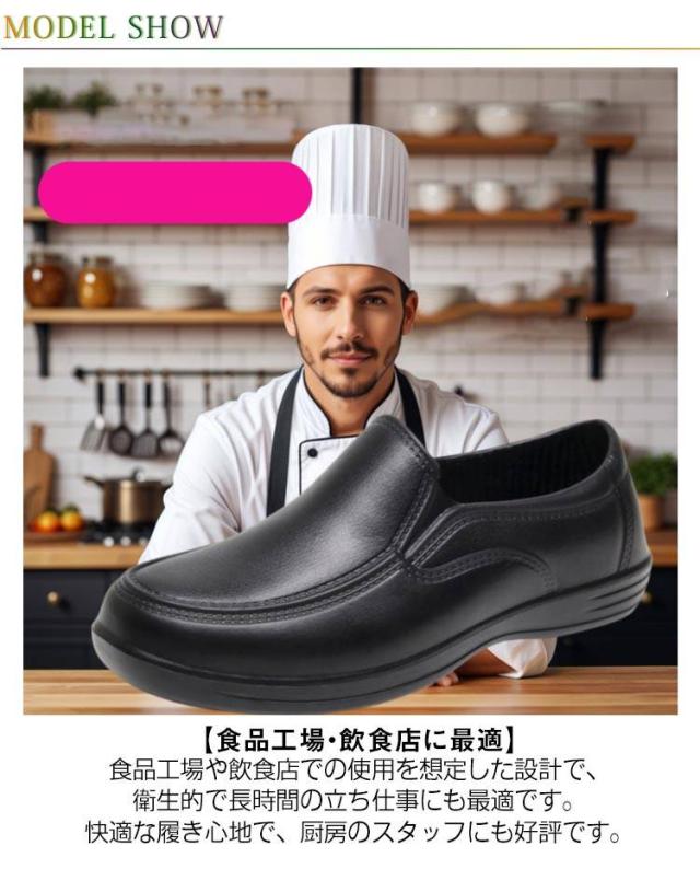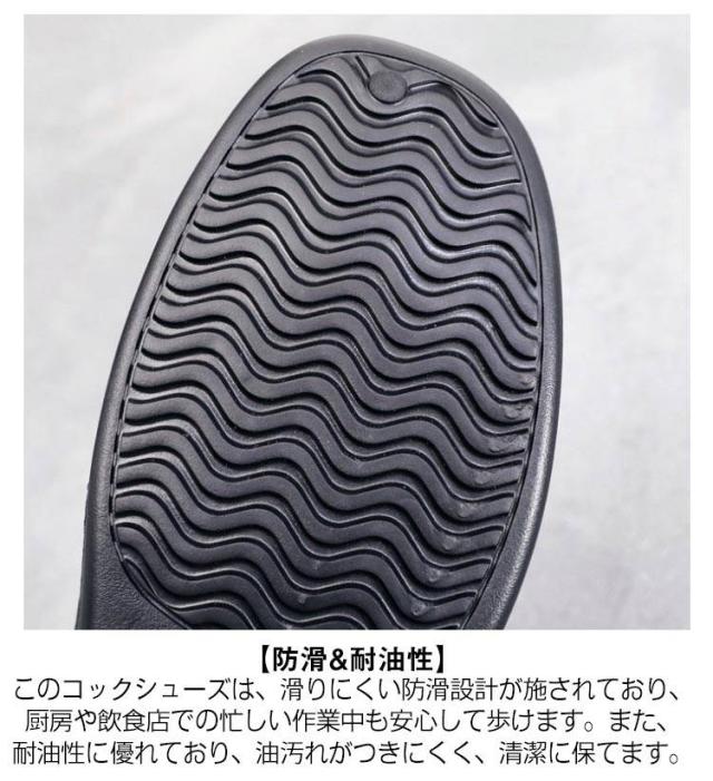 | 【防滑&耐油性】 このコックシューズは、滑りにくい防滑設計が施されており、厨房や飲食店での忙しい作業中も安心して歩けます。また、耐油性に優れており、油汚れがつきにくく、清潔に保てます。 【衝撃吸収で疲れにくい】 衝撃吸収性の高いEVA素材を使用しており、長時間立って作業しても足への負担を軽減します。足元の疲れを感じにくく、快適に作業ができます。 【防水機能&耐滑底】 防水仕様のため、厨房や水回りでも安心して使用できます。耐滑底がしっかりと足元を支え、滑りにくいため、急な動きや水滴で滑る心配もありません。 【食品工場・飲食店に最適】 食品工場や飲食店での使用を想定した設計で、衛生的で長時間の立ち仕事にも最適です。快適な履き心地で、厨房のスタッフにも好評です。 【シンプル&スタイリッシュなデザイン】 ブラックカラーのシンプルでスタイリッシュなデザインは、どんなユニフォームにもマッチし、仕事場でもおしゃれに使えます。 | |