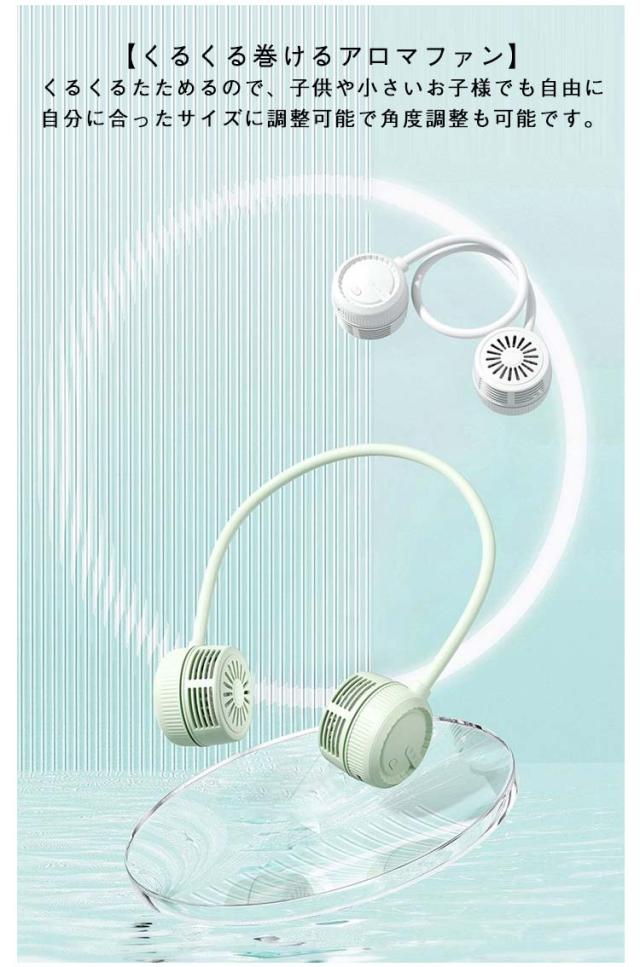 | 【くるくる巻けるアロマファン】くるくるたためるので、子供や小さいお子様でも自由に自分に合ったサイズに調整可能で角度調整も可能です。 【コンパクトサイズ】小さいサイズ感で、ポケットにもしまえます。カバンの中でも場所をとらないので、通勤、通学などの熱中症対策としてもお使いいただけます。 【3段階風量調節】強・中・弱の3段階風量を簡単に切り替え可能。状況に合わせて心地よい風を調整できます。 【軽量設計】超軽量設計で、アウトドアでの使用でも、首かけへの負担も軽減され、キャンプ、お祭り、旅行などでも持ち運びしやすい、軽量でハンズフリーのポータブル対応です。 【快適&安心使用】羽なし設計により髪の毛の巻き込みリスクもなく、長時間安心して使用可能。 【360度の角度調整】360°角度調整可能な設計で、強度の高いワイヤーで自分のお好みの角度での調整可能なので、顔、首、シャツの中にも冷風をお送り体温を冷却いただけます。 【USB充電式】この首掛け扇風機にはバッテリーが内蔵されて、充電して繰り返し使用することができます。 | |