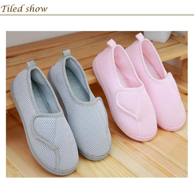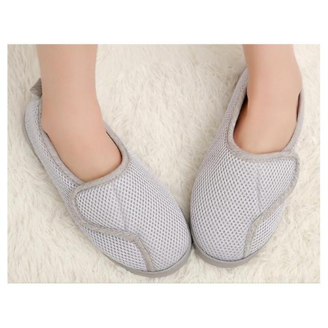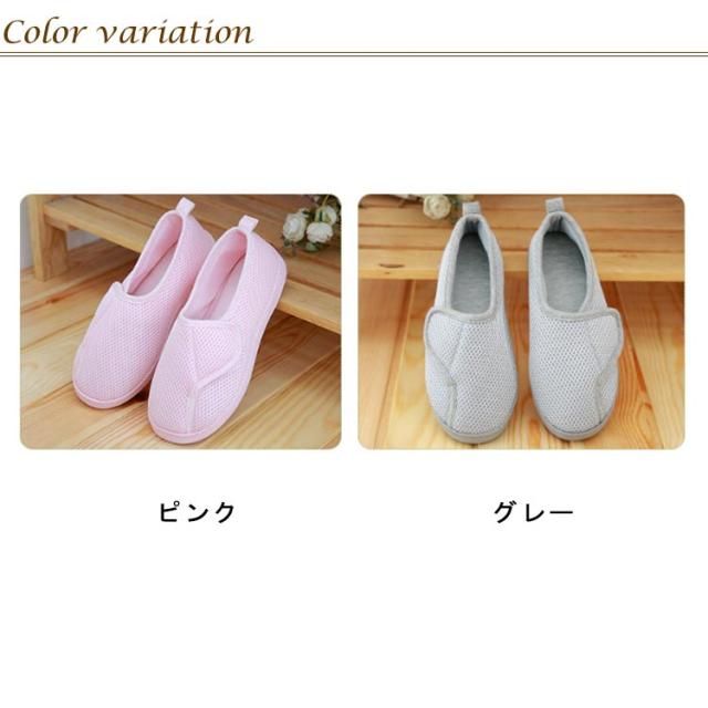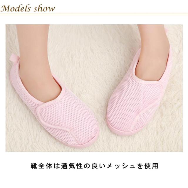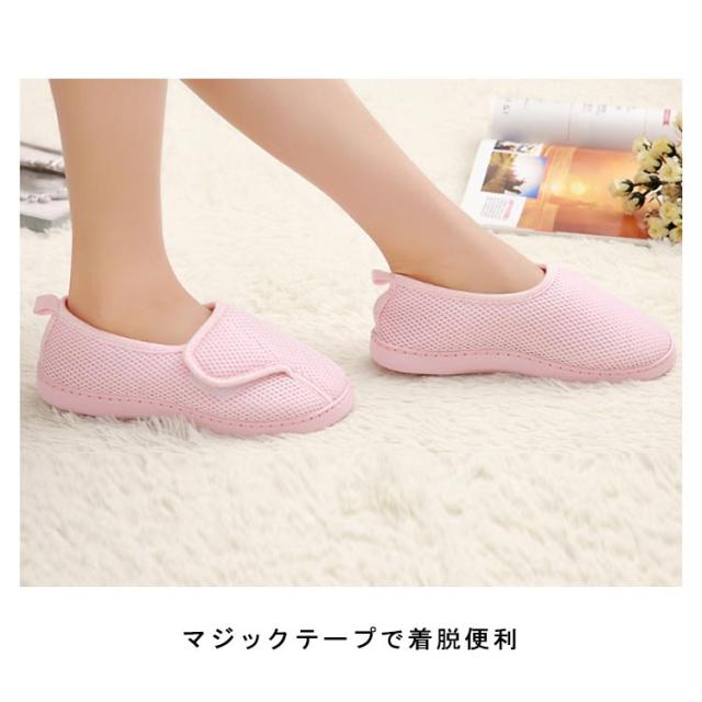 | つまずき防止 室内用スリッパ マジックテープで着脱便利 靴全体は通気性の良いメッシュを使用 素足でも気持ちよい履き心地 | |