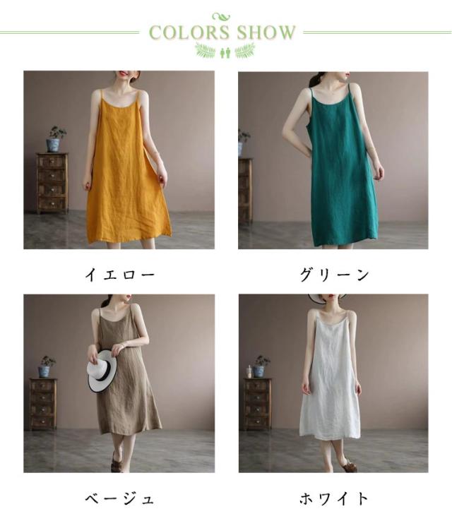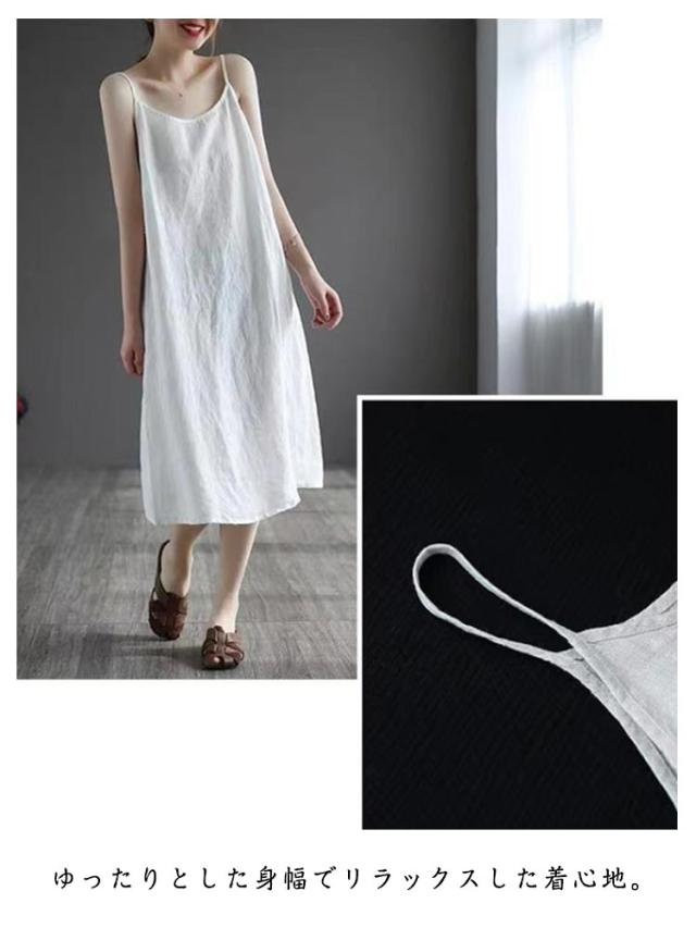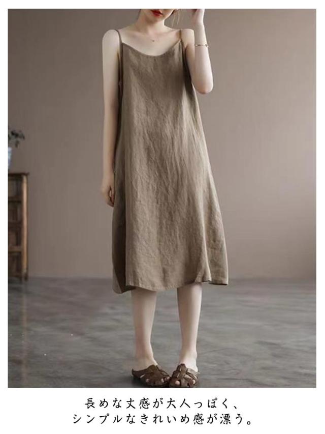 キャミワンピ レディース ワンピース ノースリーブ ミモレ丈 キャミ Aライン 体型カバー 夏 キャミソール ロングワンピ ゆったり 綿混 キャミワンピース 無地 薄手 袖なしワンピース Aラインワンピース ホワイト ブラウン