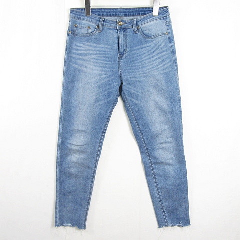 【中古】アンティカ antiqua デニム パンツ ジーンズ テーパード カットオフ ストレッチ L ライトブルー