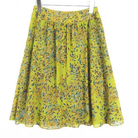 【中古】ホコモモラ JOCOMOMOLA シフォン スカート 膝下丈 42 イエロー リーフ柄 大きいサイズ kz12417 レディース