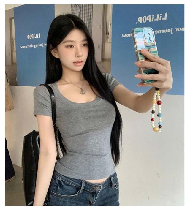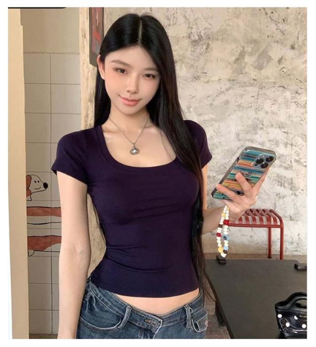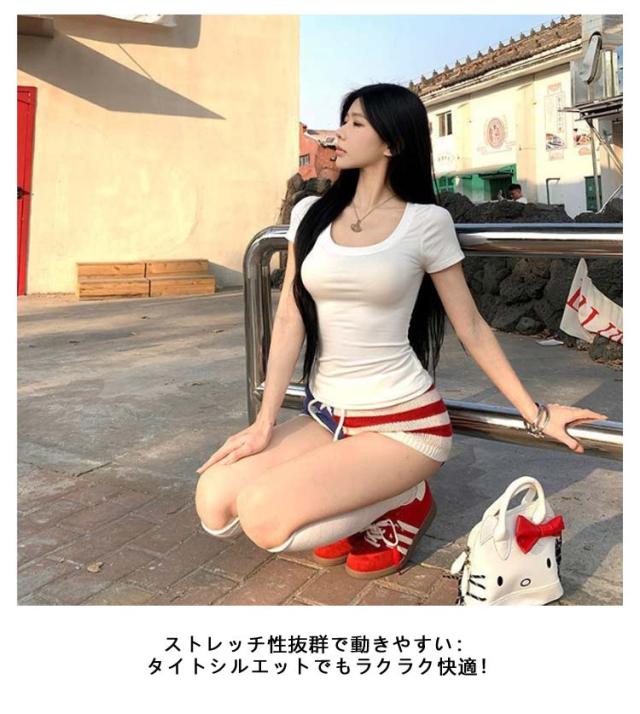 Tシャツ 半袖 tシャツ レディース 夏 トップス 無地 深め Uネック 半袖 綿 ノーブラ tシャツ 美シルエット タイト フィット セクシー カットソー おしゃれ シンプル オフィス カジュアル 骨格ストレート インナー 重ね着 細見え 送料無料