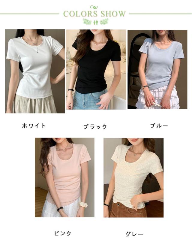 tシャツ レディース 半袖 Tシャツ 夏 Uネック スリム カットソー 白インナー 綿 無地 ノーブラ tシャツ スリムインナー 襟ぐり広め ストレッチ アンダーシャツ 袖短めシャツ インナーシャツヨガ ジム ルームウェア 送料無料