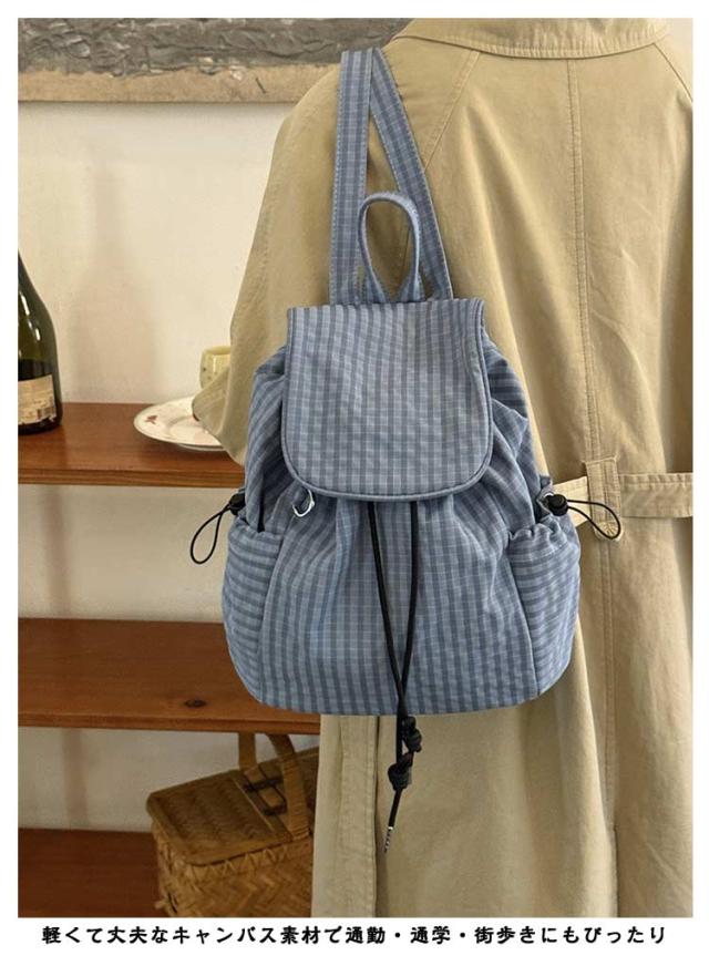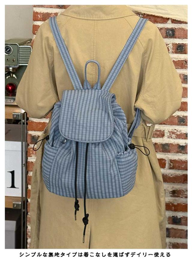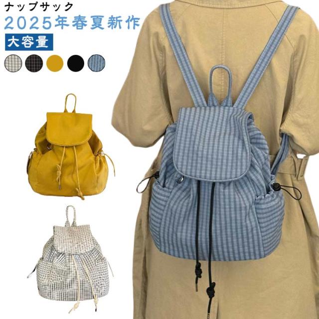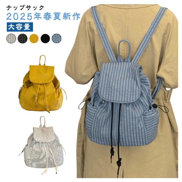 ナップサック リュック レディースバッグ 大容量 軽量 シンプル リュックサック サブバッグ チェック柄 無地 かわいい おしゃれ 女の子 大人 通勤 通学 旅行 カジュアル