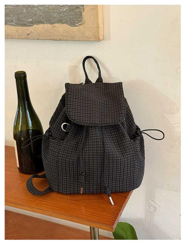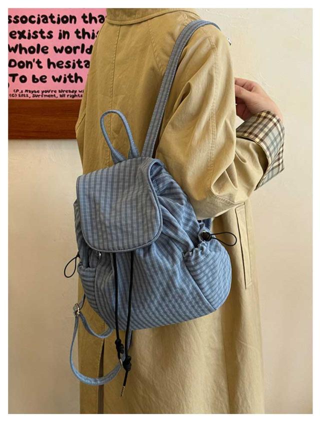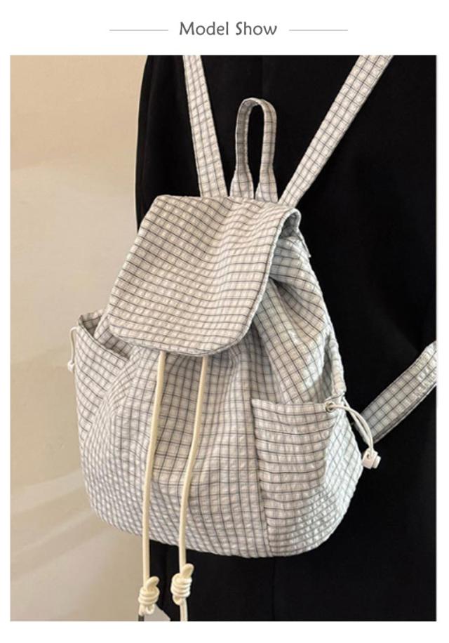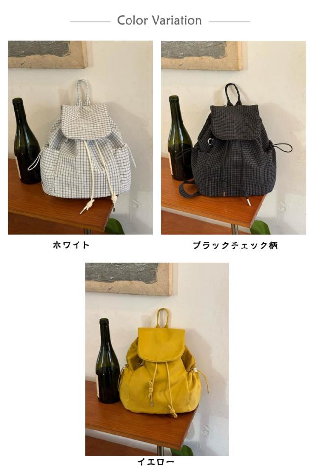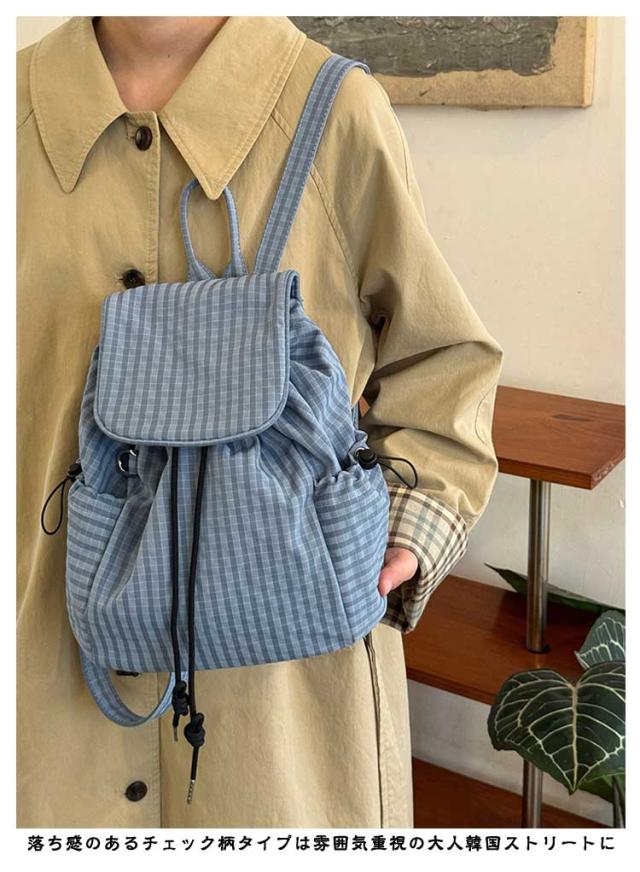 | ナップサック(2025年春夏新作) 軽くて通勤・通学にもぴったり! 軽くて丈夫なキャンバス素材で通勤・通学・街歩きにもぴったり 落ち感のあるチェック柄タイプは雰囲気重視の大人韓国ストリートに◎ シンプルな無地タイプは着こなしを選ばずデイリー使える コンパクトでも収納力◎、A5サイズのノートや小物もまとめて収納可 | |