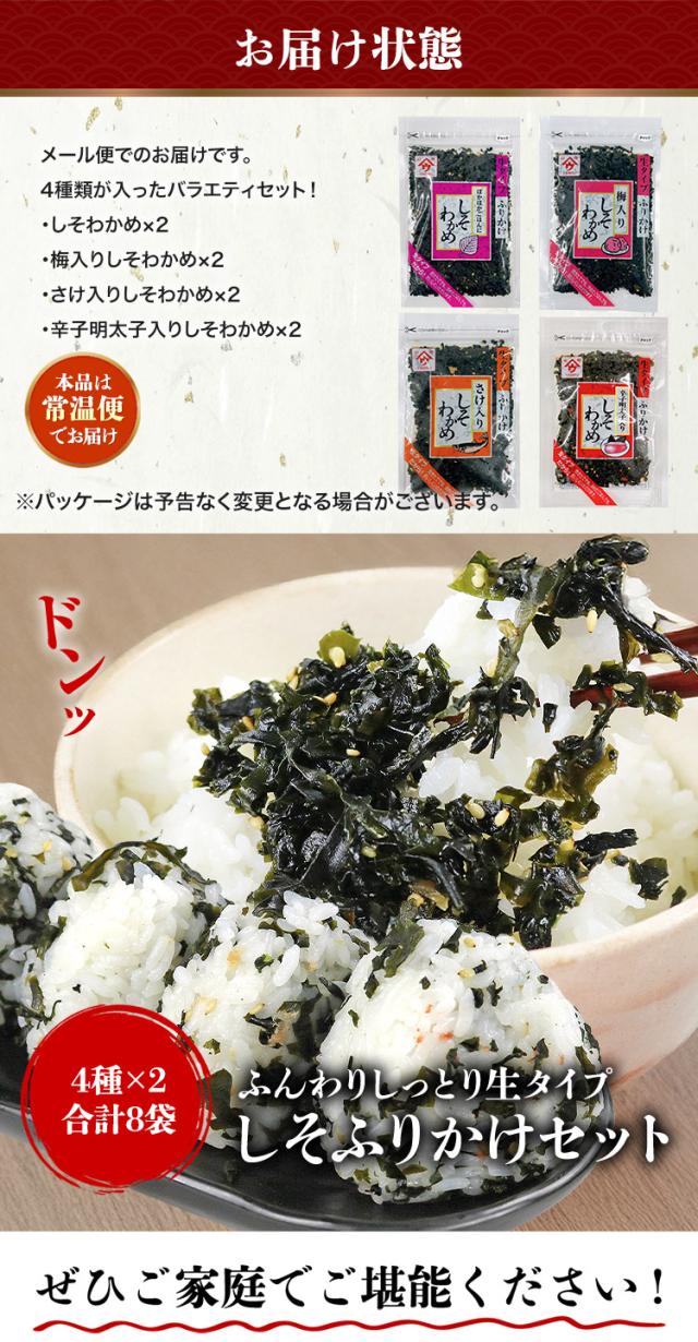 \ 送料無料 / ふりかけ 生タイプ しそわかめ 4種×2袋 セット 合計8袋 各50g 弁当 おにぎり 魚の屋 しそわかめふりかけ ふりかけ ネコポス便 送料無料 グルメ お試し セット ギフト プレゼント ポイント消化