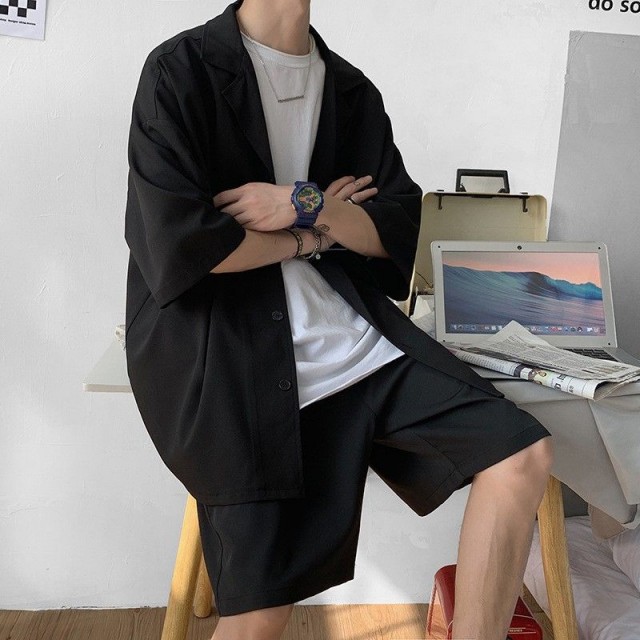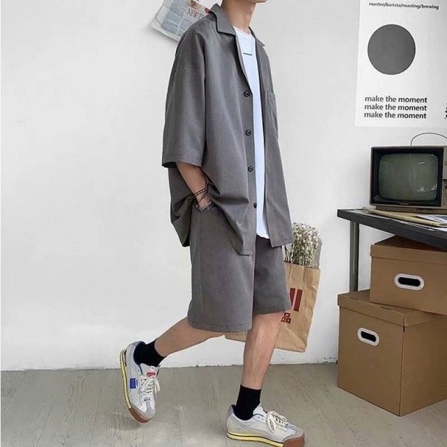 セットアップ メンズ 夏 半袖 上下セット 短パン シャツ 無地 カジュアル ホームウエア 部屋着 スウェット ルームウェア 涼しい