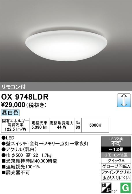 オーデリック OX9748LDR LEDシーリングライト 〜12畳 昼白色 調光タイプ リモコン付属 照明資材 ODELIC