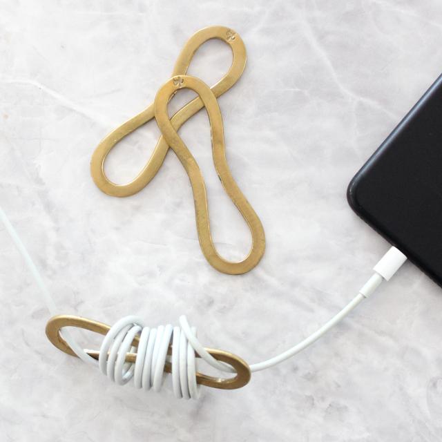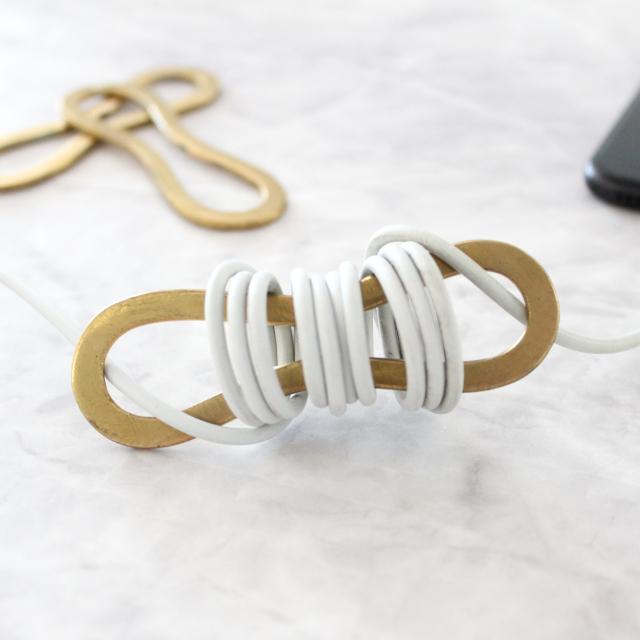 デスクまわりでごちゃつくコード類を雰囲気よく整えるブラスリング。