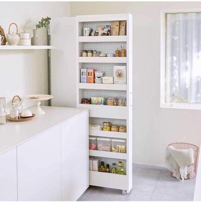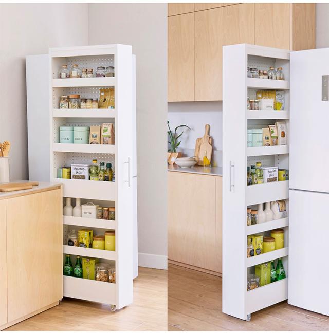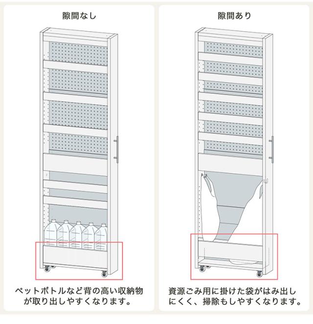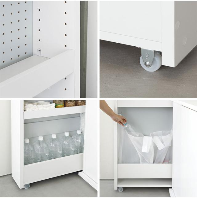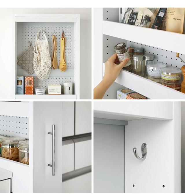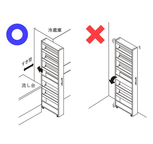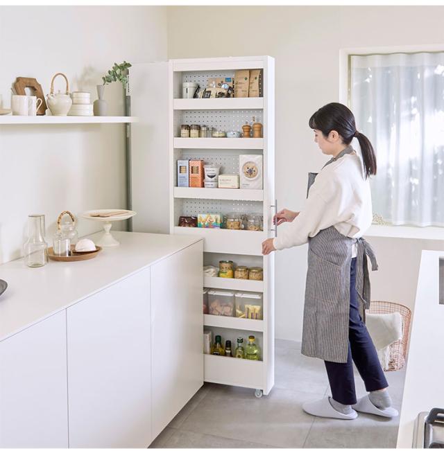 冷蔵庫の横や食器棚の横など隙間を有効活用してキッチンをスッキリ快適にできます。