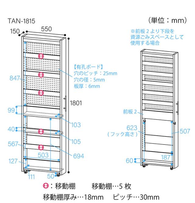 幅15.0 × 奥行55.0 × 高さ180.1(cm)