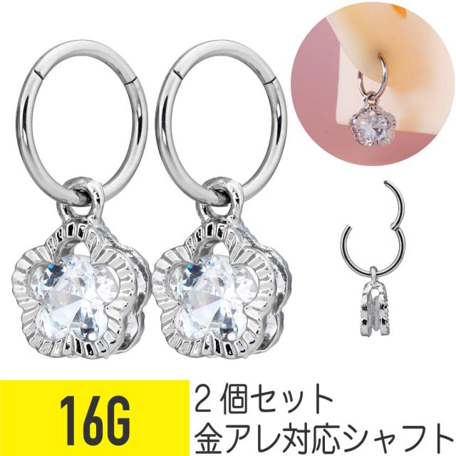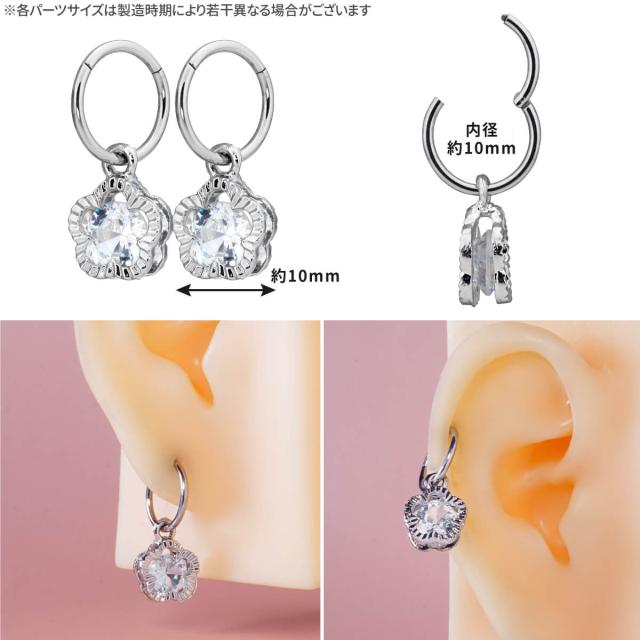 2個セット チャーム ワンタッチ セグメントリング 16G サージカルステンレス ヘリックス 軟骨ピアス ボディピアス フラワー 花