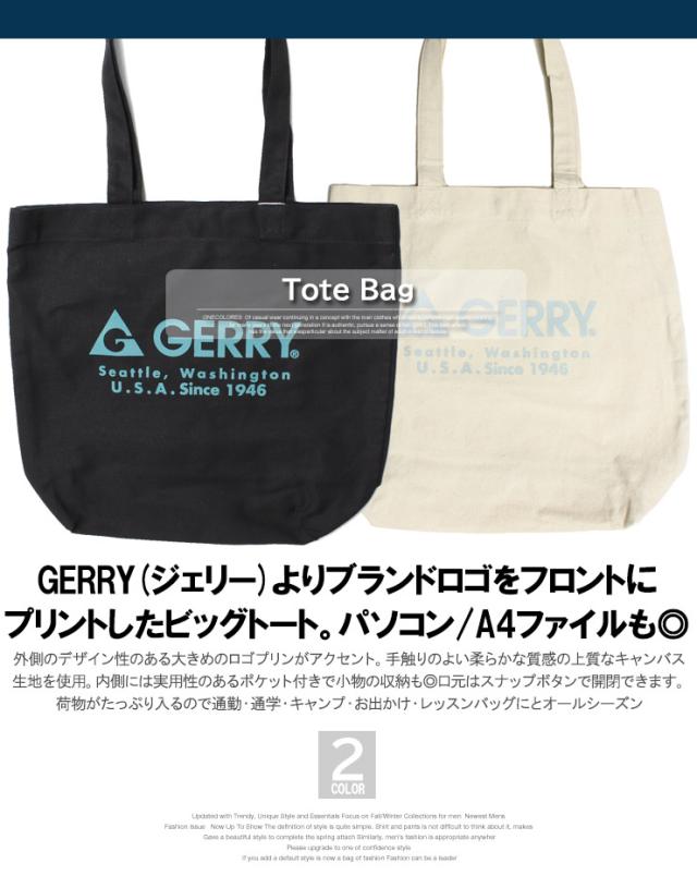 送料無料 GERRY(ジェリー) キャンバス トートバッグ メンズ レディース ロゴ プリント キャンバストート 帆布 綿100% 厚手 シンプル ビッグトートバッグ エコバッグ 通勤 通学 マザーズバッグ 軽量 軽い 大容量 肩掛け 男女兼用 ユニセックス かばん アウトドア ワークマン