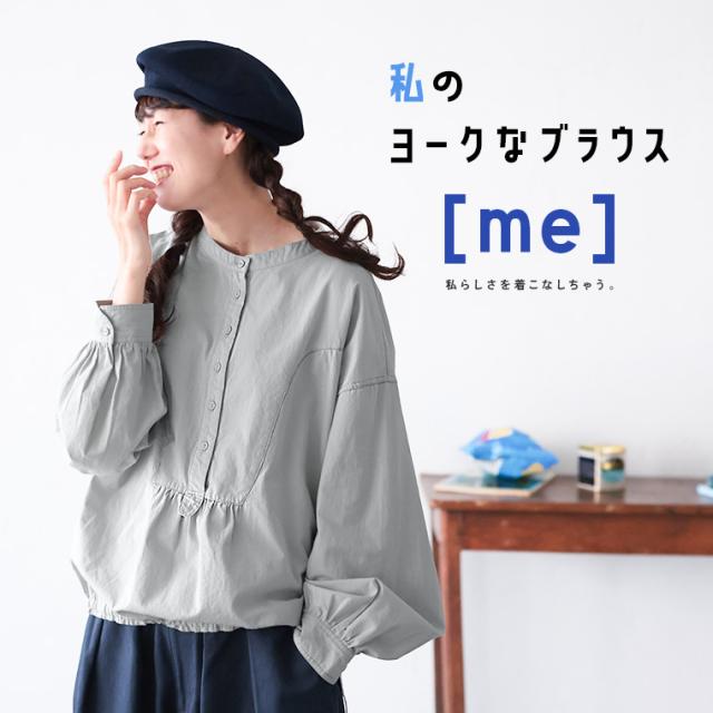 [me] 私のヨークなブラウス レディース シャツ プルオーバー 長袖 ノーカラー 綿 コットン トップス