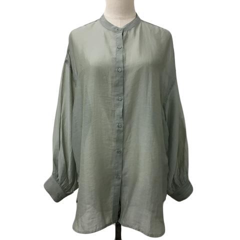 【中古】チャオパニック ティピー シャツ ブラウス バンドカラー シアー 透け感 スリット パフスリーブ 長袖 ONE 緑