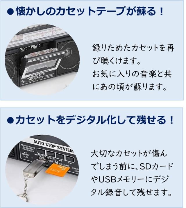 カセットテープ デジタル化 再生 録音 FMAM ラジオ USBメモリ SDカード 昭和 歌謡 懐メロ レトロサウンド・ラジオ・カセット・レコーダー RTR-S66 クマザキエイム レトロサウンド ラジオカセットレコーダー ラジカセ KUMAZAKI AIM