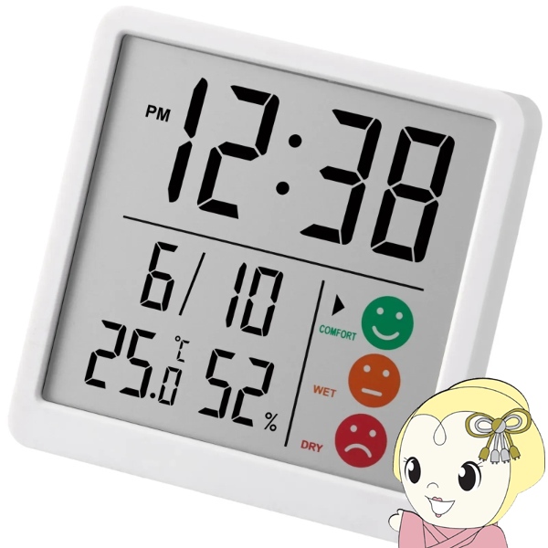 ●顔アイコンでお部屋の状態がひと目でわかるデジタル温度湿度計