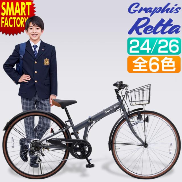 子供用 自転車 【3日間限定価格】 折りたたみ シティサイクル クロスバイク 24インチ 26インチ おしゃれ カゴ LEDライト 手元スイッチ 6段変速