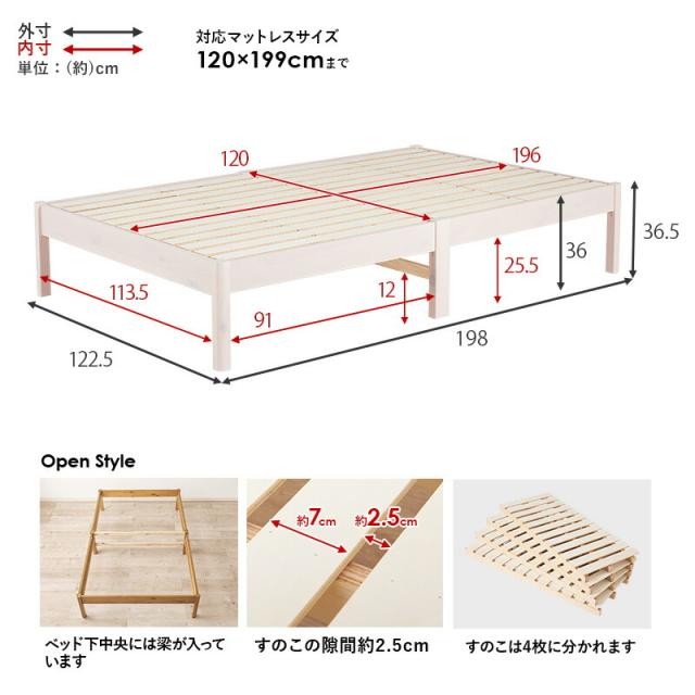 マットレス付セミダブルベッド 天然木 木製 組立簡単すのこベッド 萩原 ベッド下収納 丈夫 通気性 頑丈 おしゃれ 北欧