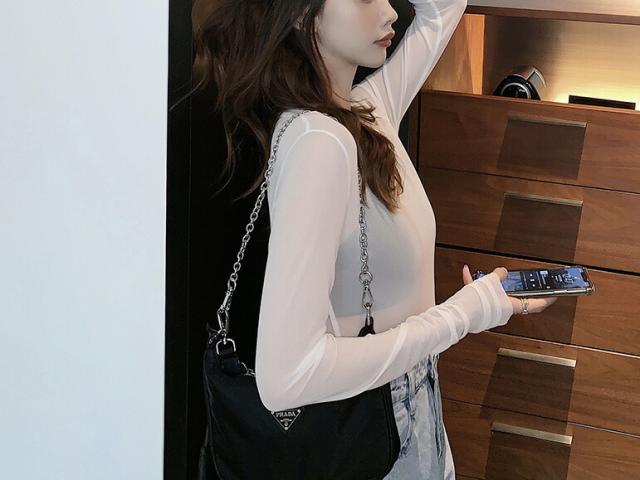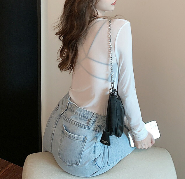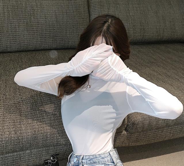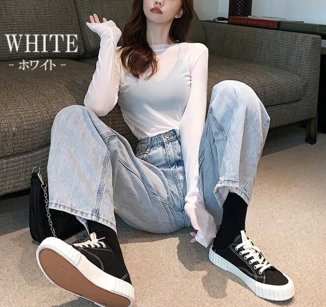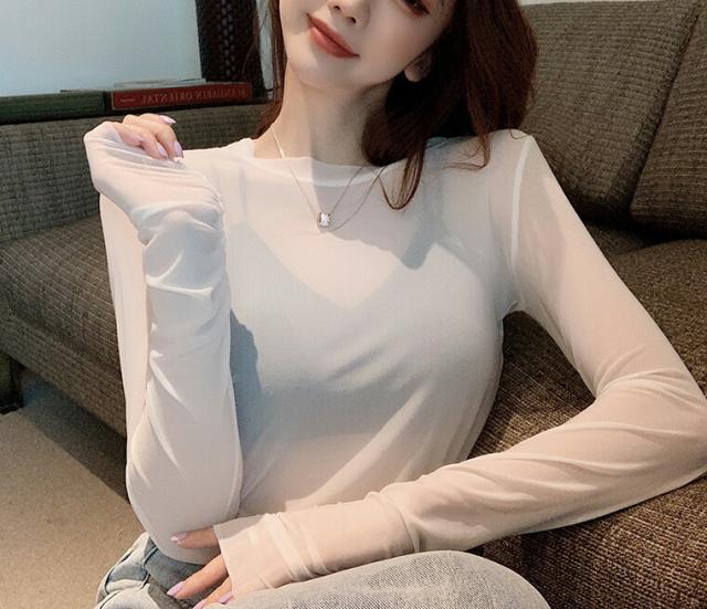 女性らしい美ラインを演出 レディース シアー トップス シースルー ラウンドネック 長袖 カットソー スリムフィット レイヤード 無地 透け感 重ね着 UV対策