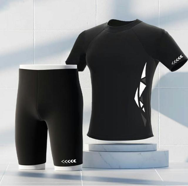 メンズ スイムウェア ラッシュガード 上下セット レディース水着セット S M L XL 2XL 3XLセパレート フィットネス水着 競泳 半袖 スイミングパンツ トレーニング 水中ウォーキング 黒
