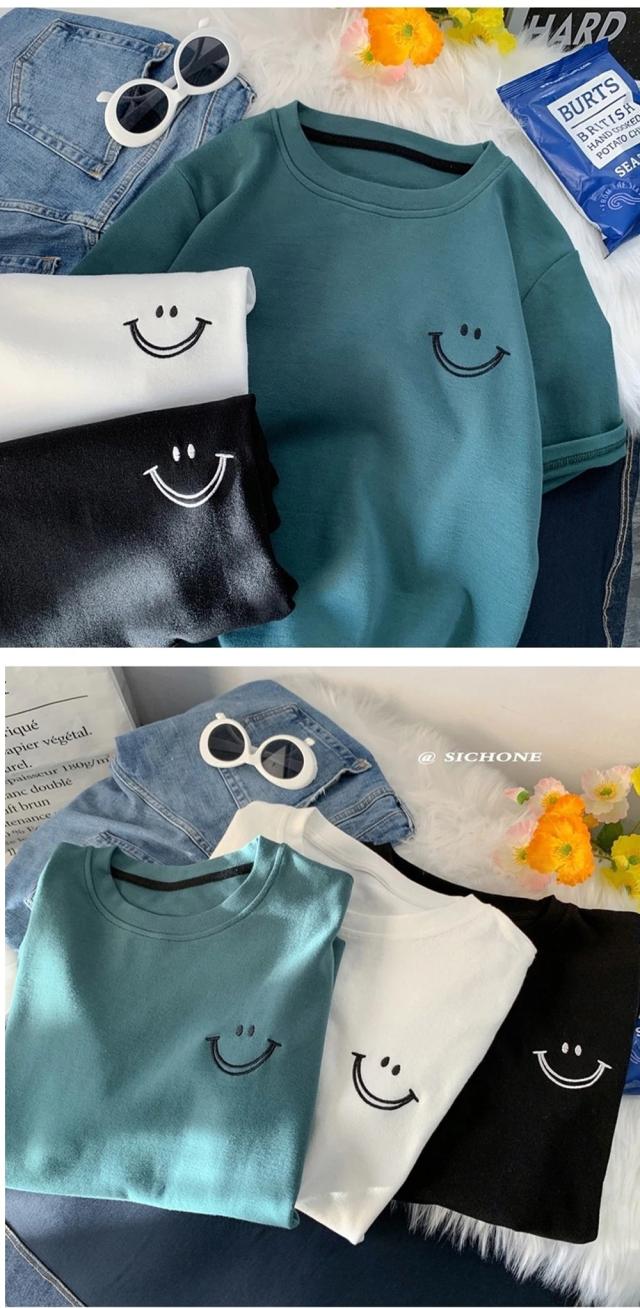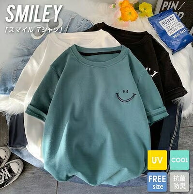 スマイル tシャツ レディース 半袖 トップス Tシャツ カットソー 人気 ホワイト ブラック グリーン M L XL 2XL