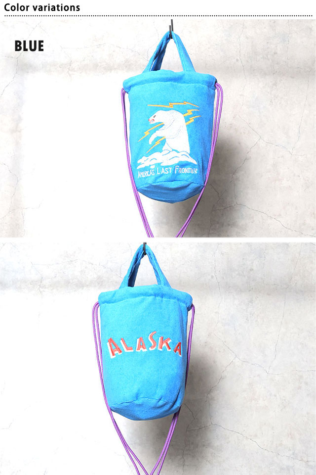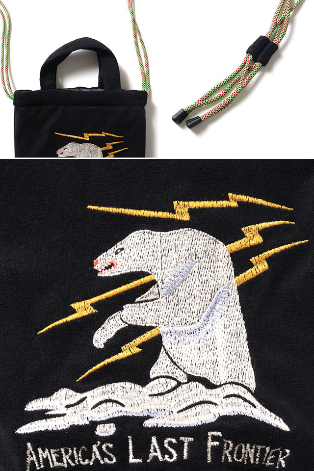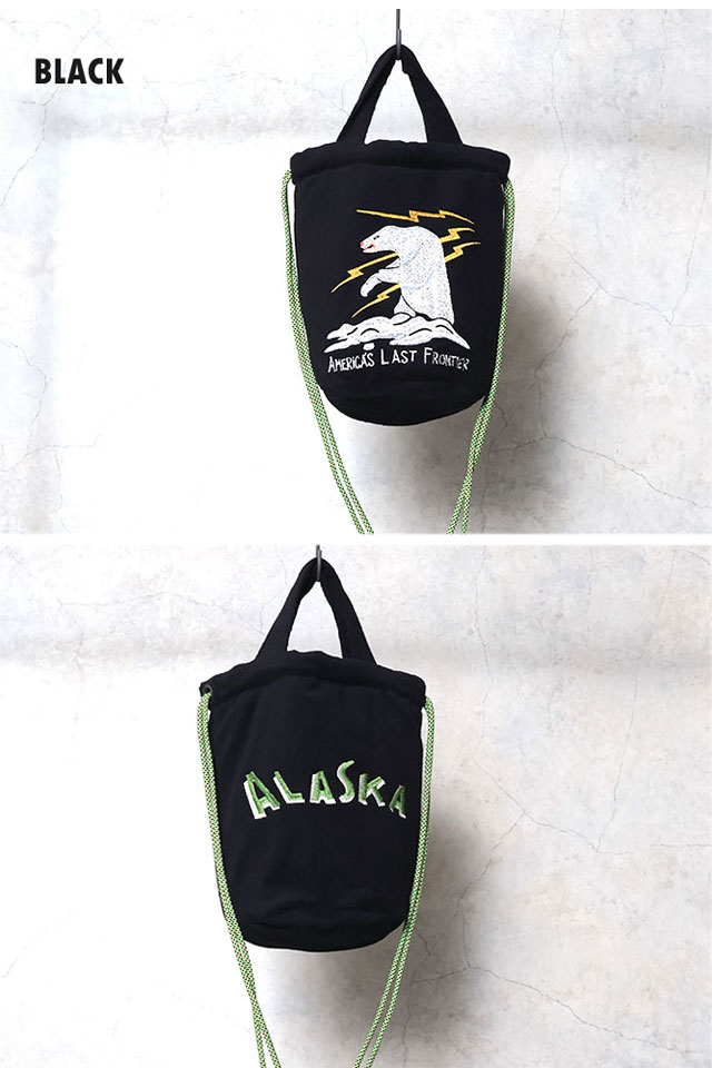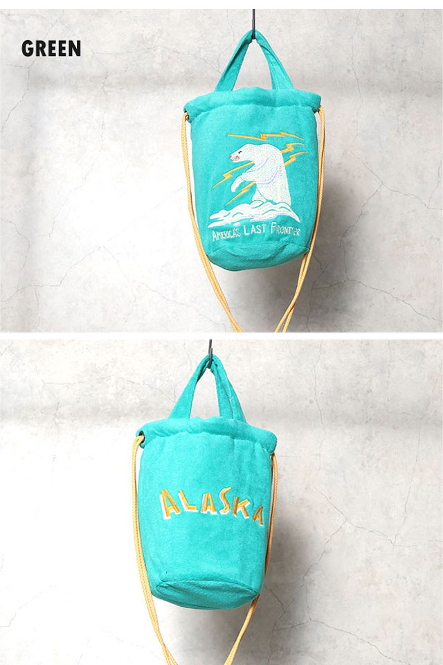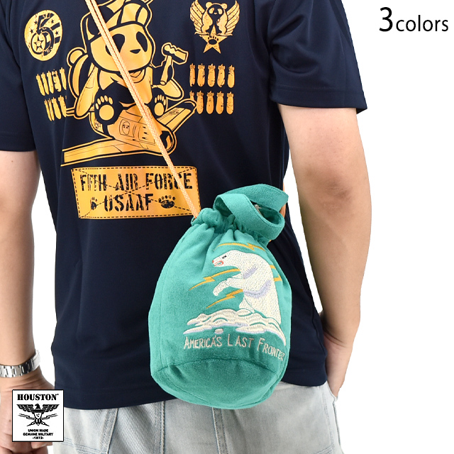 刺繍パイルエフェクトバッグ「ALASKA」 HOUSTON 6891 ヒューストン 刺繍 和柄 アラスカ シロクマ 熊 巾着 かばん
