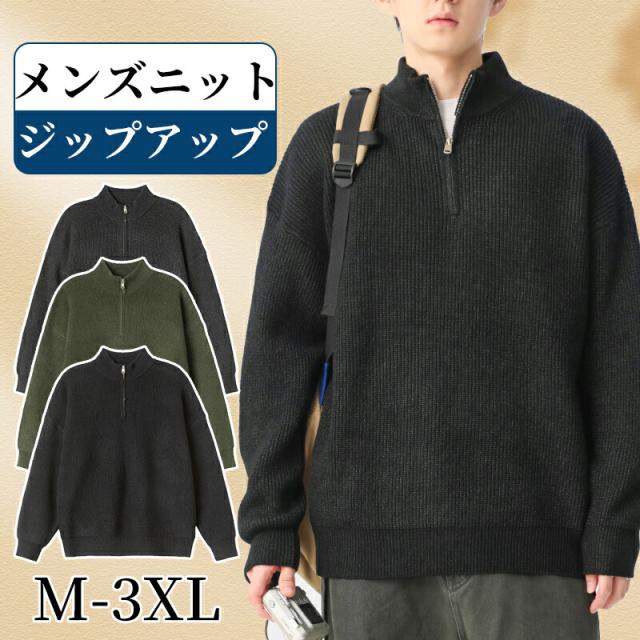 ニットセーター メンズ ハーフジップ トップス ニット セーター 豊富 グレー 緑 黒 M(おすすめ体重50~60kg) L(おすすめ体重60~70kg) XL(おすすめ体重70~80kg) 2XL(おすすめ体重80~90kg) 3XL(おすすめ体重90~100kg)