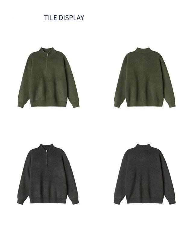 【送料無料】メンズセーター ゆったり ハーフZIP 暖かい シンプル オーバーサイズ スウェット 贈り物 20代 30代 40代 グレー グリーン ブラック M L XL 2XL 3XL