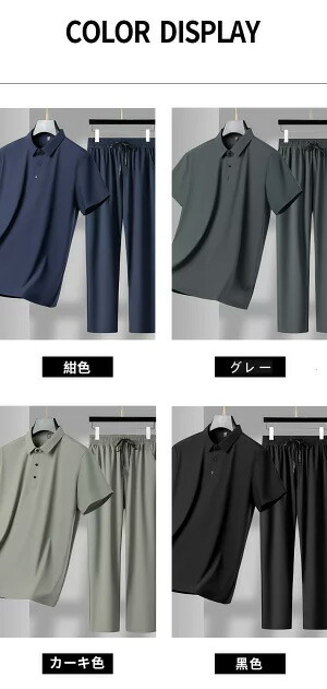 セットアップ メンズ 夏 半袖 長ズボン 上下セット スウェット 冷感 ポロシャツ ロングパンツ 大きいサイズ Tシャツ ボトムス カジュアル ゴルフ 運動 ビジネス テニス サッカー トレーニング