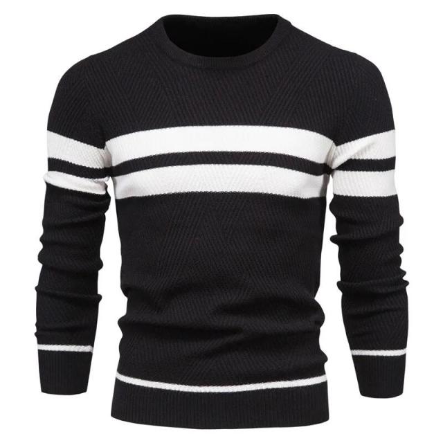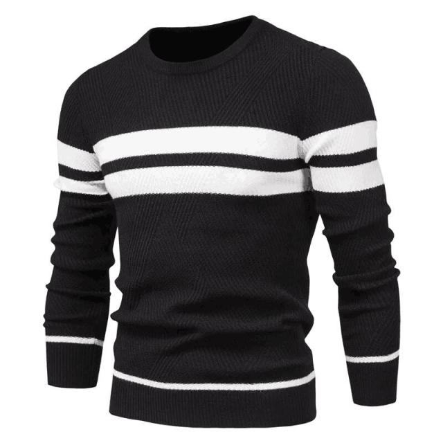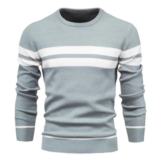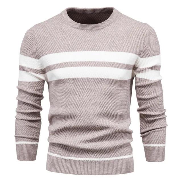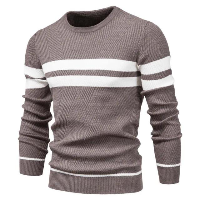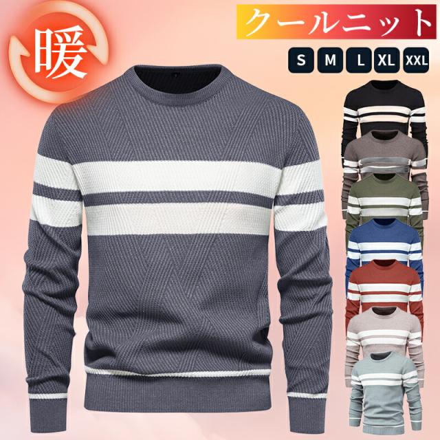 【送料無料】クールネックニット セーター メンズ 縞柄 ニットカットソー 丸首 ストレッチ 普段着 大きいサイズ 長袖 防寒 長袖セーター 全8色 ギフト 誕生日
