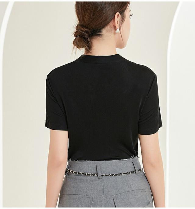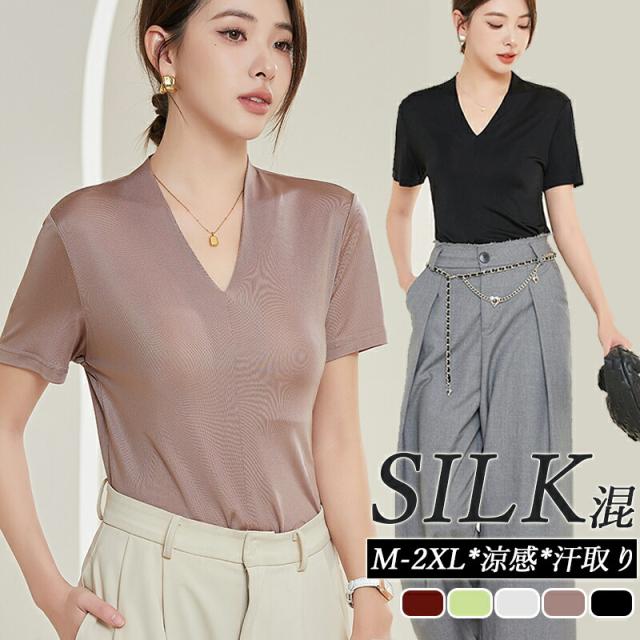 Tシャツ 半袖 レディース Vネック シルク 夏 涼感 大きいサイズ ビジネス カットソー 無地 トップス シンプル 滑らか シルクブラウス 涼しい 大人 通勤 OL オフィス きれいめ サマーtシャ