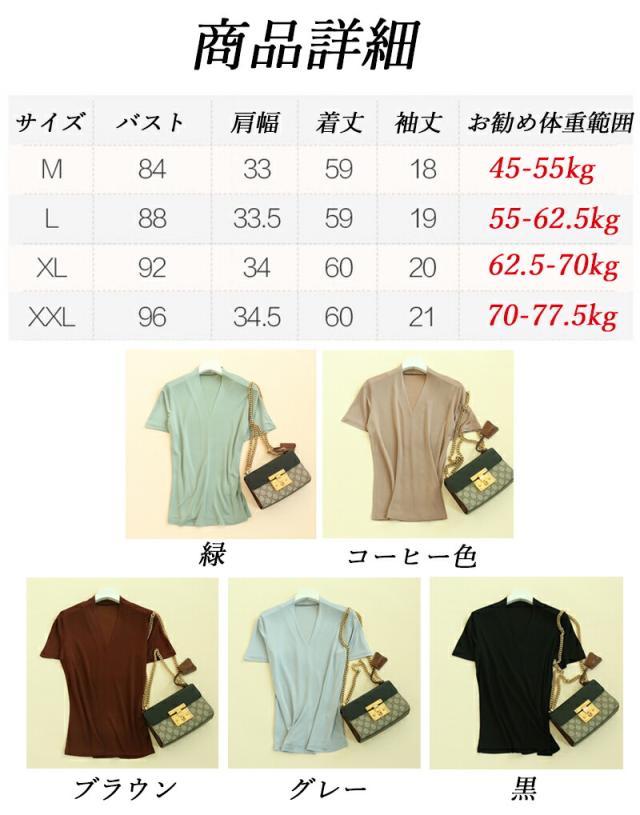 Tシャツ 半袖 レディース Vネック トップス Tシャツ カットソー 人気 緑 コーヒー ブラウン グレー 黒 M L XL 2XL