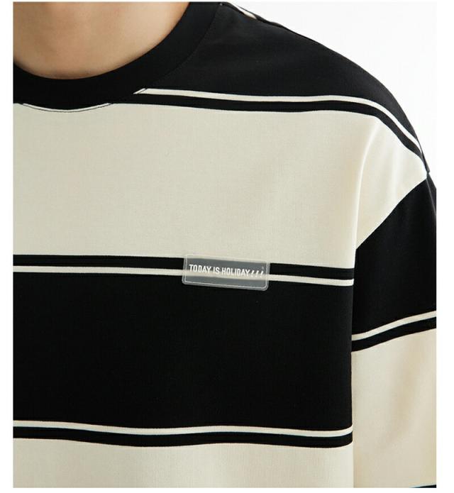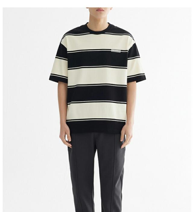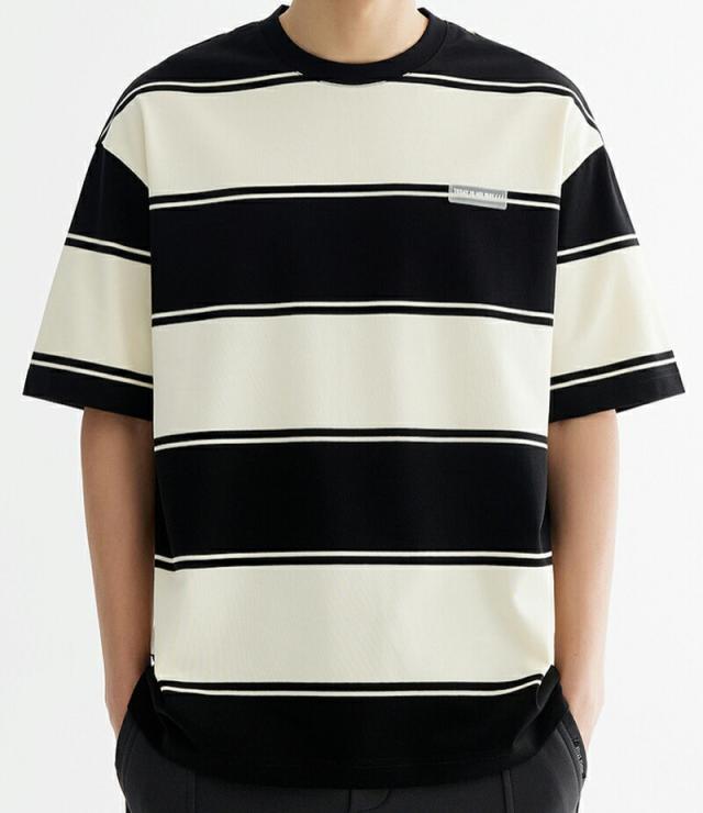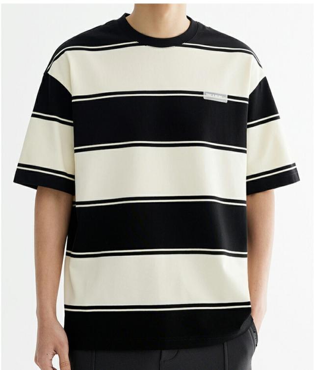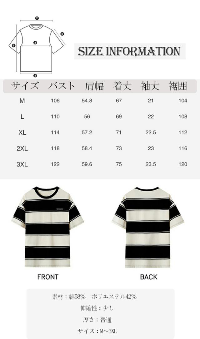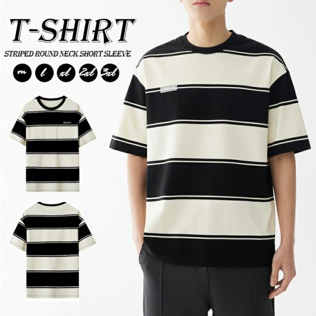 半袖 tシャツ メンズ 綿 クルーネック ストライプ 丸首 オシャレ 夏 オーバーサイズ カットソー ゆったり トップス 黒 ビッグシルエット おしゃれ かっこいい 透け防止 旅行 通学メンズファッシ