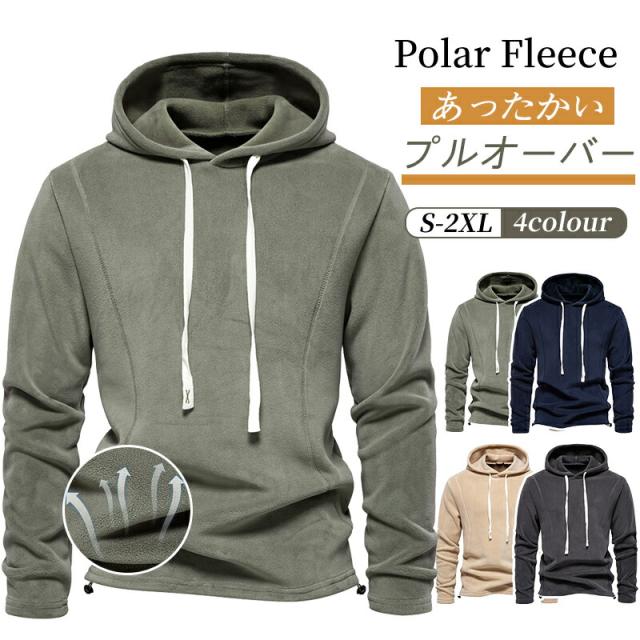 【送料無料】メンズパーカー 暖かい トレーナー カジュアル 厚手 ストリート 長袖パーカー プルオーバーパーカー あったか ギフト グリーン グレー カーキ ネイビー S M L XL 2XL