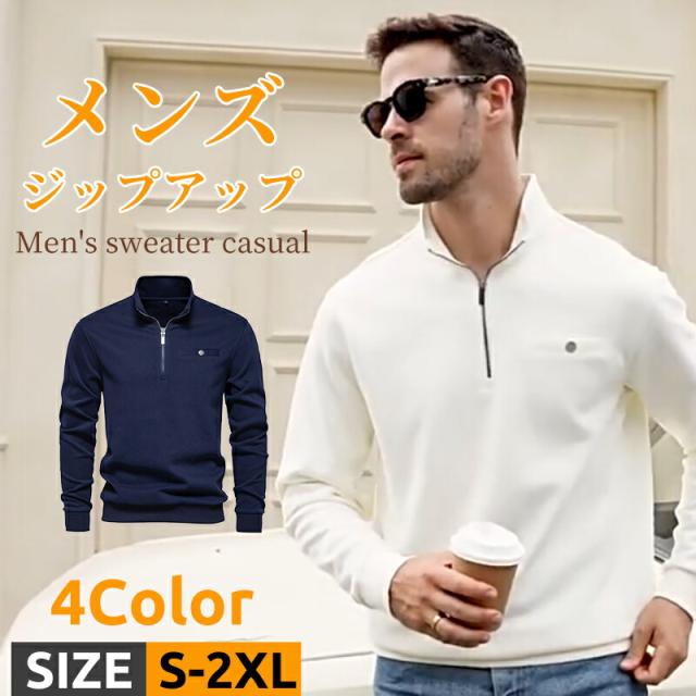 ハーフジップ トレーナー メンズ 秋 メンズファッション お買い得 グレー 紺 黒 白 S M L XL 2XL