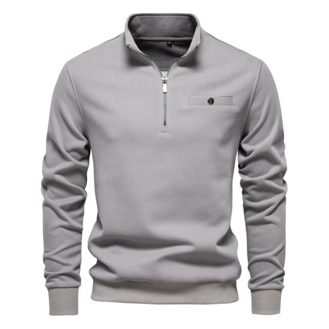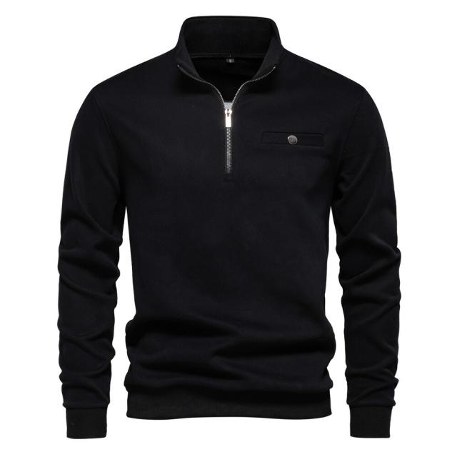 【送料無料】スウェット ハーフZIP 無地 スポーツウェア 長袖ポロシャツ スエット ストリート Tシャツ グレー ネイビー ブラック ホワイト S M L XL 2XL
