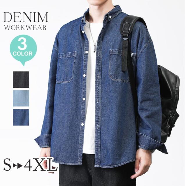 ★メンズ デニムシャツ 長袖 ファッション メンズ 春物 シャツジャケット メンズ デニム シャツ ゆったり デニムワークシャツ 胸ポケット