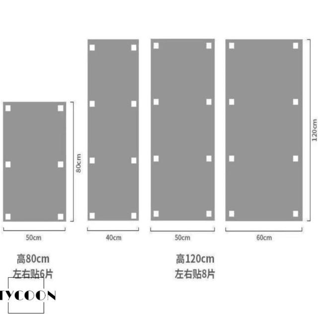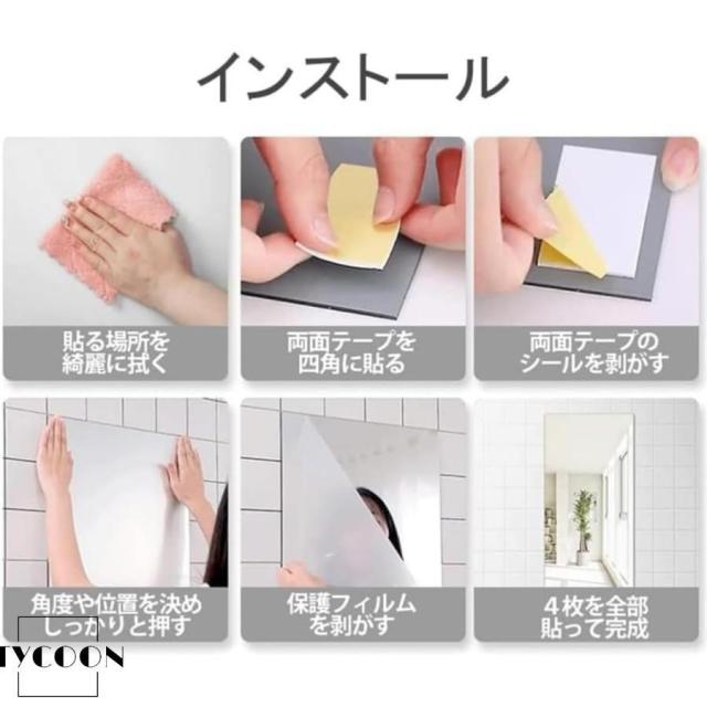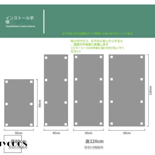 【取り付け注意事項】姿見鏡の反射が歪まないために、シールを貼る時必ず隅に付けて、凹凸のない平面に設置してください。