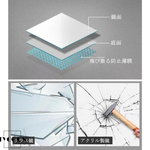 【簡単貼り付け】粘着シールでミラーのバックの隅々に貼り付けて、平らな壁面やドアなどのところに設置できます。インストールには僅か3分だけ、通常のグラス鏡より安全で便利です。