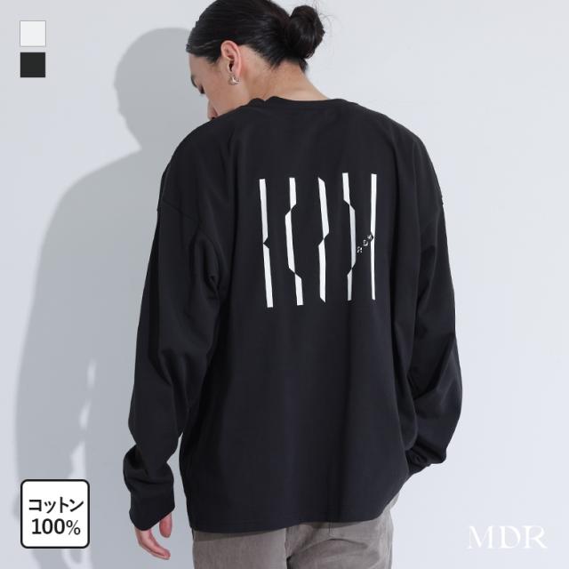 『MDRロゴプリントT』【メール便不可】【20】[カットソー 長袖 メンズ トップス ロンT ロゴ プリント 幾何学柄 クルーネック プルオーバー 綿100% レイヤード 重ね着 インナー 春 秋 冬]