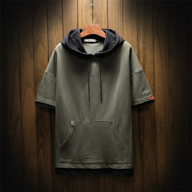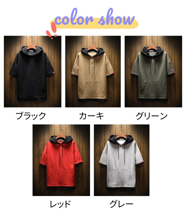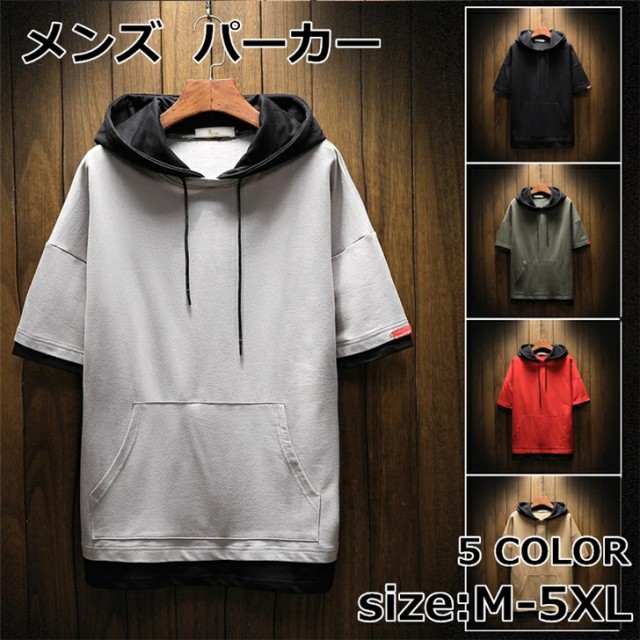 パーカー メンズ 大きいサイズ 半袖 半袖トレーナー tシャツ フード付き 無地 ジャージ スウェット 夏新作