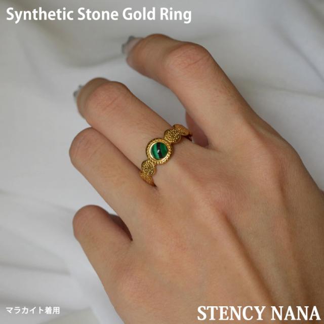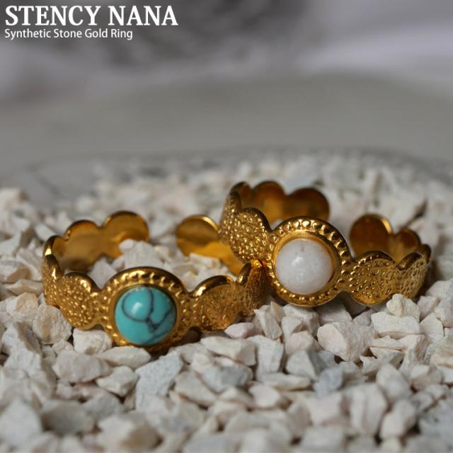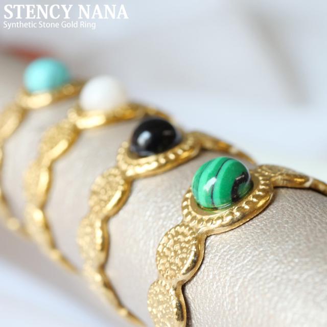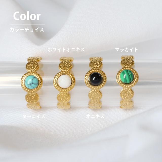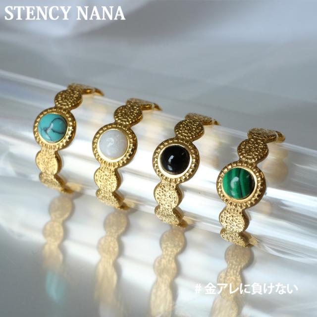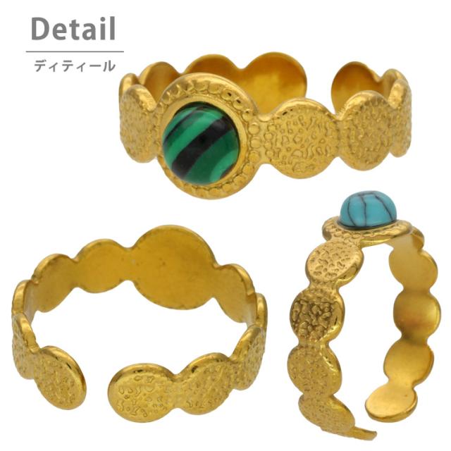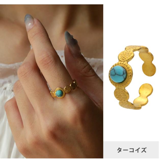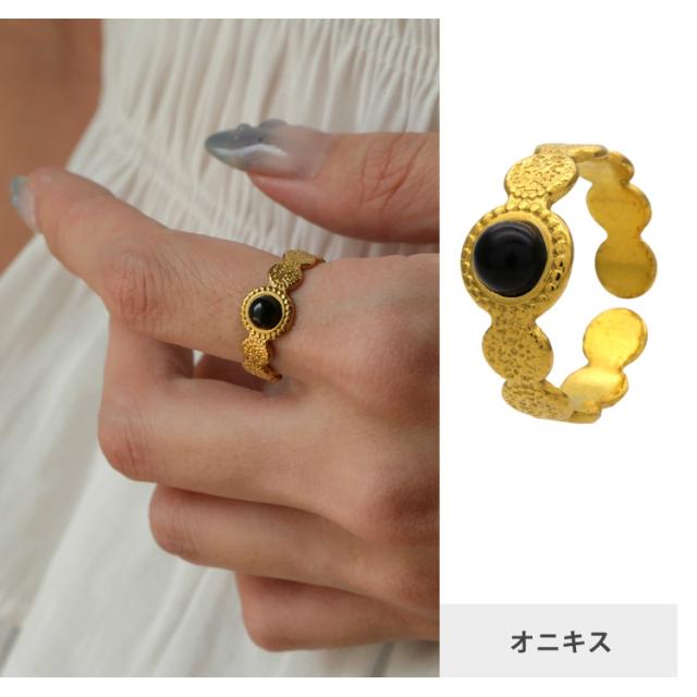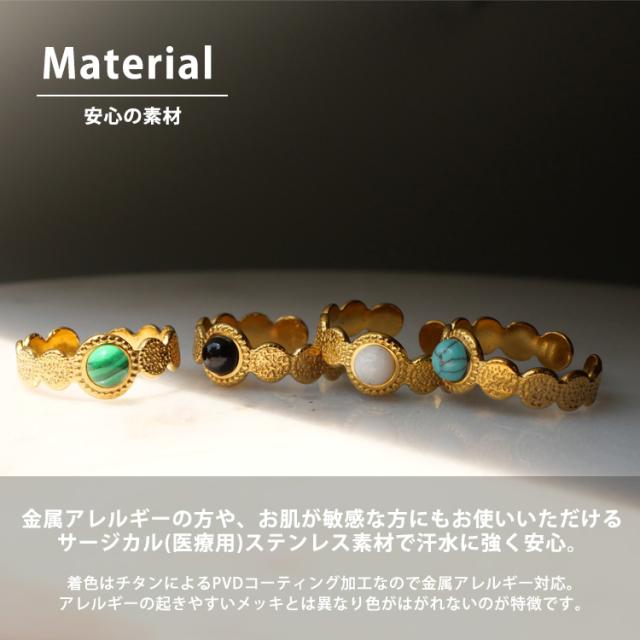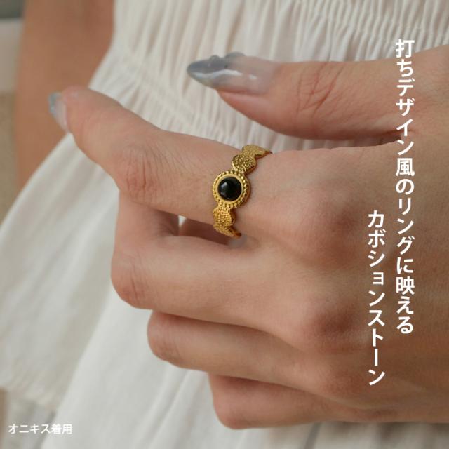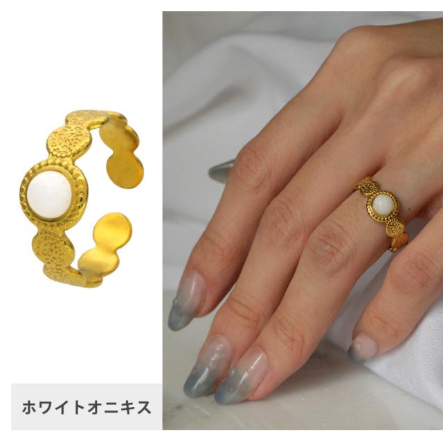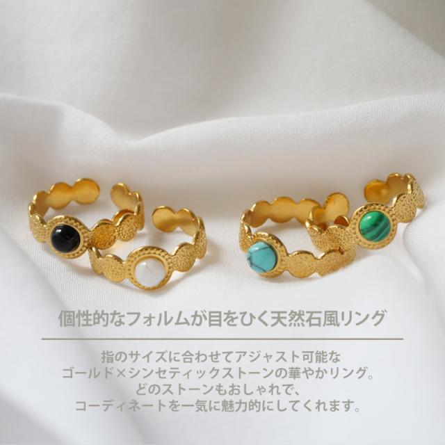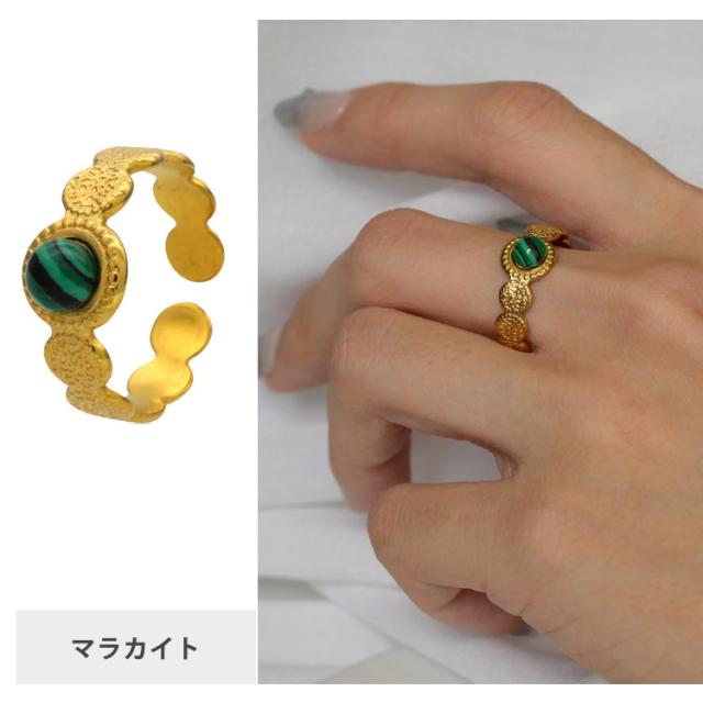 金属アレルギー対応 ステンレスリング 天然石風ゴールドリング フリーサイズ カボション 指輪 ゆびわ 316L