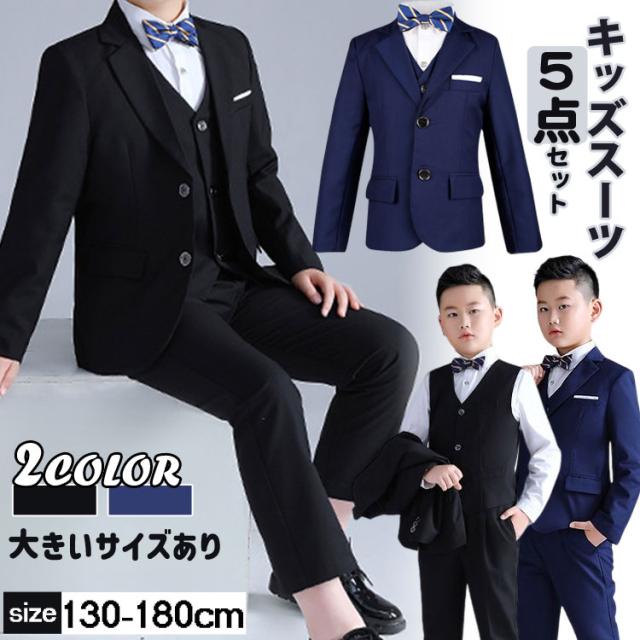 5点セット 卒業式 入学式 キッズ ス キッズ スーツ カジュアルセットアップ スーツ お得なセール ブラック ネイビー 130cm 140cm 150cm 160cm 170cm 180cm