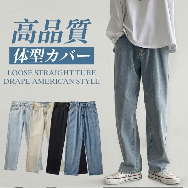 ★送料無料★ワイドパンツ デニムパンツ メンズ ゆったり ストリート系 イージーパンツ ジーンズ カッコイイ ジーパン 綿 ヒップホップ おしゃれ 夏服 ブラック ブルー S/M/L/XL/2XL