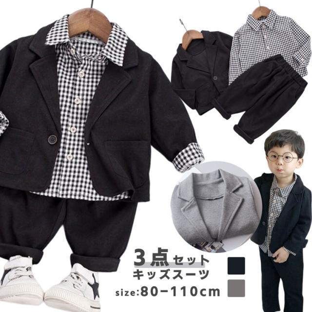3点セット 子供服 フォーマル 男の子 キッズ ベビー マタニティ 豊富 ブラック グレー 80cm 90cm 100cm 110cm