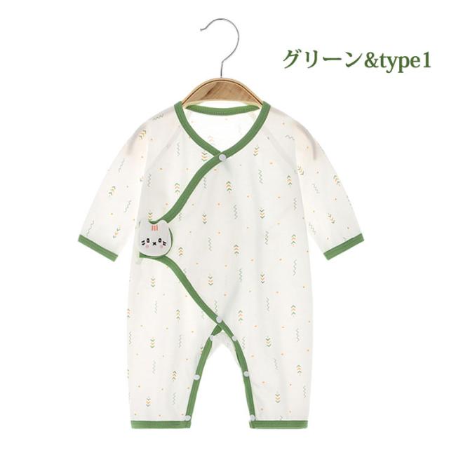 ベビー服 ロンパース 女の子 男の子 キッズ ベビー マタニティ 人気 グリーン&type1 グリーン&type2 ブルー&type1 ブルー&type2 52cm 59cm 66cm