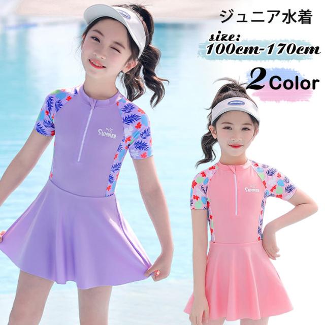 ジュニア ワンピース水着 キッズ 女の子 水着 子供水着 スクール水着 ラッシュガード 可愛い お洒落 100cm 110cm 120cm 130cm 140cm 150cm 160cm シンプル ス